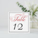 Elegant Red Black & White Script Table Number Card