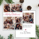 Modern Simple Elegant Red Calligraphy 5 Photo Collage Merry Christmas Script Holiday Card. This festive, minimalist, whimsical five (5) photo holiday greeting card template features a pretty grid photo collage and says „Merry Christmas”! The „Merry Christmas” greeting text is written in a beautiful hand lettered swirly swash-tail font typography or calligraphy script in red on white colour background. On the reverse side with your greeting message template with a little heart doodle on white and one horizontal photo template. This Pretty Custom Personalized Photo Christmas Cards are a great way to remind loved ones that you're thinking of them this Winter Holiday Season.