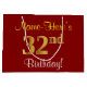 Elegant, Red, Faux Gold 32nd Birthday; Custom Name Large Gift Bag