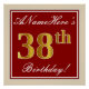 Elegant, Red, Faux Gold 38th Birthday; Custom Name Poster