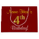 Elegant, Red, Faux Gold 4th Birthday + Custom Name Large Gift Bag