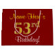 Elegant, Red, Faux Gold 53rd Birthday; Custom Name Large Gift Bag