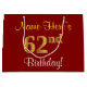 Elegant, Red, Faux Gold 62nd Birthday; Custom Name Large Gift Bag