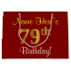 Elegant, Red, Faux Gold 79th Birthday; Custom Name Large Gift Bag