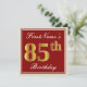 Elegant, Red, Faux Gold 85th Birthday; Custom Name Invitation