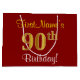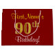 Elegant, Red, Faux Gold 90th Birthday; Custom Name Large Gift Bag