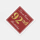 This simple and elegant paper napkin design features a message like "FirstName’s 92nd Birthday" (with the "92nd" having a faux gold-like colouring) within a red-coloured square area featuring a simple border outline. The name is in a white-coloured script-like text, and can be personalized. Napkins like these could perhaps be used at a birthday party for somebody who is celebrating their ninety second birthday. [~Z0000138]