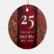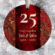 Elegant red floral Christmas wedding anniversary Ceramic Ornament