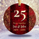 Elegant gold red floral monogram Christmas Wedding anniversary Ceramic ornament. Sparkly ,stylish and elegant beautiful inexpensive gift for couples celebrating their marriage. It’s an elegant wedding anniversary keepsake that can be personalized with your special anniversary information.