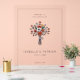 This acrylic sign features a simple, elegant design with a vertical layout and ample white space. The central illustration showcases a vibrant bouquet of red poppies, white daisies, and green foliage, tied together with a black ribbon. Below the bouquet, customizable placeholders for names, date, and location are presented in a clean serif font, adding a formal touch to the modern aesthetic. Perfect for weddings, this sign exudes warmth and anticipation, making it an ideal addition to any celebration.