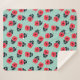 Elegant Red Flowers Aqua Blue Polka Dots Pattern Sherpa Blanket