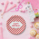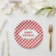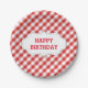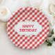 Elegant Red Gingham Pattern Personalized Birthday Paper Plate