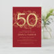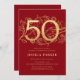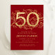Elegant Red Gold 50th Birthday Invitation