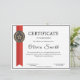 Designed to convey honor and longevity, this certificate features a sophisticated aesthetic with a vertical red award ribbon, a distinguished gold star seal with a laurel wreath border, and a subtle textured background that mimics high-quality security paper. The combination of navy blue serif headers and elegant black script for the recipient's name creates a look of formal importance.