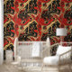 Elegant red gold black tiled marble wallpaper
