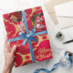 Elegant Red & Gold Christmas Pattern Two Photo Wrapping Paper
