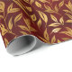 Elegant Red Gold Leaf Botanical Christmas Wrapping Paper