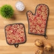 Elegant Red & Gold Swirls Pattern Boho Christmas Oven Mitt & Pot Holder Set