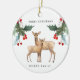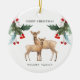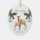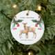 ELEGANT RED GREEN HOLLY BERRY DEER DUO CHRISTMAS CERAMIC ORNAMENT
