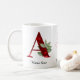 Add a touch of botanical romance to your morning routine with this custom Initial "A" Coffee Mug. Featuring a bold, serif letter "A" filled with a rich red heart pattern and accented with delicate watercolor green leaves, this mug blends classic typography with a modern romantic aesthetic.