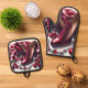 The design printed well on the oven mitt and pot holder, keeping its bold red color. It made a great gift.