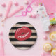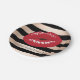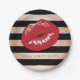 elegant red lips rose gold black stripes pattern paper plate