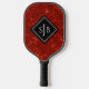 Elegant Red Marble Black Diamond Monogram Pickleball Paddle