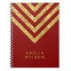 Elegant notebook featuring faux gold chevron pattern that you can personalize with your name against a red background cover. Great as gifts for family and friends or for yourself.