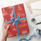 Elegant Red Orange Gift Wrapping Paper with Christmas Tree Pattern, Add Name or Text