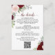 This beautiful wedding enclosure card is designed to give you extra space for whatever information your guests may need, including registry, reception, travel, accommodations, etc. as well as a customizable QR code directing your guests to your website for more information. The card features a rustic boho chic design with hand painted watercolor roses in shades of red, burgundy, and blush pink. The title is written in elegant script lettering and reads "the details." The back is a deep marbled burgundy red colour with a cluster of the same flowers along with eucalyptus leaves and garden greenery.