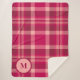 Elegant Red Pink Tartan Pattern Monogram Sherpa Blanket