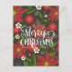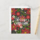 Elegant Red Poinsettia Floral Modern Script Holiday Postcard