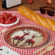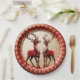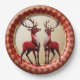 Elegant Red Reindeer Moose Gold snow merry Xmas Paper Plate
