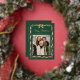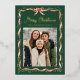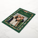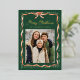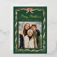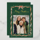Share festive greetings with this elegant gold foil Christmas photo card featuring a watercolor greenery garland and classic red ribbon on a rich evergreen background. The front highlights your favourite photo, accented with “Merry Christmas” in whimsical gold foil script and your family name shown just below. The back continues the dark green design with a second photo and space for your personalized holiday message, creating a timeless two-sided keepsake with classic ribbon and greenery details.
