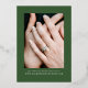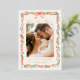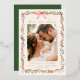 Announce your wedding with elegance and shine using this foil-stamped holiday photo save the date card. Featuring a hand-painted red ribbon and greenery frame on a warm cream background, this design showcases your engagement photo with gold foil accents for a luxurious, festive touch. "Save the Date" is displayed in a romantic handwritten script in real foil, with space on the back for a second photo and your wedding website. Perfect for winter or holiday-themed weddings, this design offers classic charm with a refined, elevated finish.