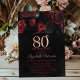 Elegant Red Roses Black 80th Birthday Invitation