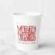 cups. These simple and festive paper cups features a swirly stylish red Merry Christmas in script on a clean white background.