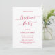 Modern Chic Calligraphy Script Minimalist Red and White Christmas Party Invitations is perfect for a simple Christmas event. Features an elegant „Christmas Party” text in a beautiful hand lettered swirly swash-tail font script in red on white background. Easy to personalize with your name and party details.