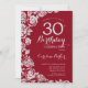 Elegant Red Silver Roses 30th Birthday Party Invitation