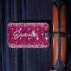 Elegant red silver sparkly glitter monogram luggage tag