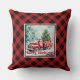 Elegant red truck winter scene rustic festive throw pillow