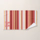 elegant red white and pink stripes pattern monogram bath towel set. custom colourful stripes pattern bath towel set.