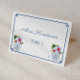 This design is sold as a 3.5x5 inches flat card that you will need to fold (or score and fold) in half yourself to make individual place cards with a folded size of 3.5x2.5 inches. This classic design features a watercolor Ginger Jar vase filled with red and blue and white florals. The design also has a Greek Key border on the front and a Greek Key pattern on the back. You can change the contrast color (currently a dark blue) by entering the design tool ("click to customize further" underneath the text customization boxes) and changing the background colors.