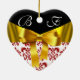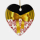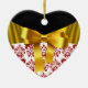 ELEGANT RED WHITE DAMASK GOLD RIBBON MONOGRAM CERAMIC ORNAMENT