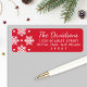 Crisp white snowflakes scatter across a vibrant red background on this elegant holiday return address label. Classic white script and refined typography bring timeless Christmas charm. Personalize with your family name and address for holiday card mailings. A festive finish for every Christmas envelope.