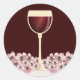 A beautifully hand-drawn elegant wineglass of a red wine is nestled among pretty cherry blossoms in a lovely wine-themed design. Makes a beautiful statement on your envelopes or favours, especially for events held at a vineyard or in wine country. The wine glass is delicately shaded and holds a lovely red varietal against a deep, rich chocolate brown background. The flowers are softly coloured in a rosy pink hue that deepens in the centre.