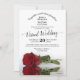 This beautiful invitation is designed for couples who have decided to take their weddings online due to the ongoing pandemic. It features a gorgeous design with lacy script calligraphy a single long stemmed red rose reflecting in a pool of water. Wonderful way to invite your friends and family to share in your special day, even if circumstances prevent a physical gathering.