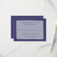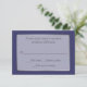 All purpose response RSVP card done in a regency midnight blue purple colour, with graphics of a silver tone edged white semi transparent text area, with custom black text. Size is small enough to fit in with all the popular invitation sizes. Customize the text to suit your needs.