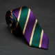 This eye-catching necktie features sharp diagonal stripes in vibrant purple, deep emerald green, and thin shimmering gold lines. The bold colour combination creates a confident, luxurious, and modern look that stands out in the best way. Perfect for weddings, formal events, fraternity or school colours, or adding personality to your business attire. The rich purple and green with gold accents pair beautifully with white, black, navy, or grey shirts and suits. Whether you're the groom, a groomsman, or simply a man who loves classic striped ties with a fresh, energetic twist, this purple green gold striped tie brings style, energy, and sophisticated flair.