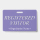 This respectable badge design features the message "REGISTERED VISITOR", and a customizable company name or other custom message. A badge like this could be used to indicate that a visitor or guest at a workplace is allowed to be there. [~Z0000307]